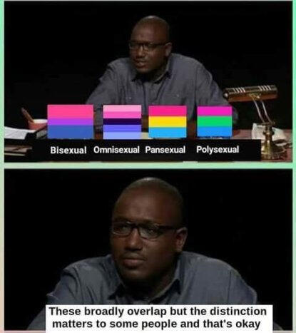 Omnisexual and omniromantic people are attracted to people of all genders, where gender is a factor in attraction. This orientation is very similar to pansexual/panromantic in that omniromantic/omnisexual people are attracted to people of all genders, however the factor of gender in attraction is an important nuance for people who identify this way.